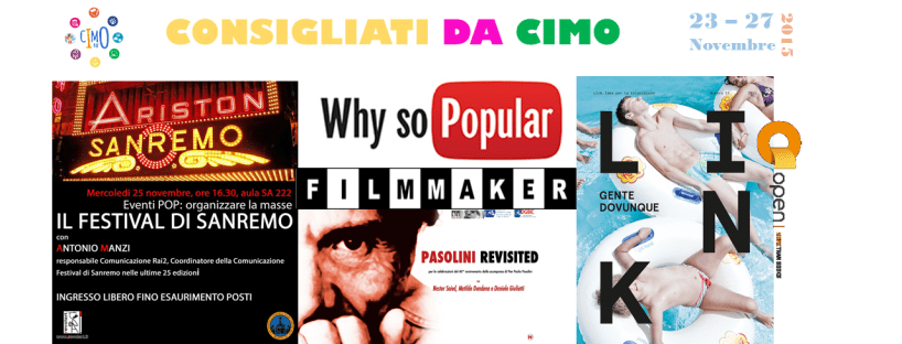 Fine novembre pieno di attività per la rubrica CONSIGLIATI DA CIMO! Questa settimana si parla in particolare del mondo televisivo: dai nuovi “divi” , alla produzione di format, all’organizzazione dei grandi eventi TV, Cinema e Teatro. Dateci un’occhiata!
