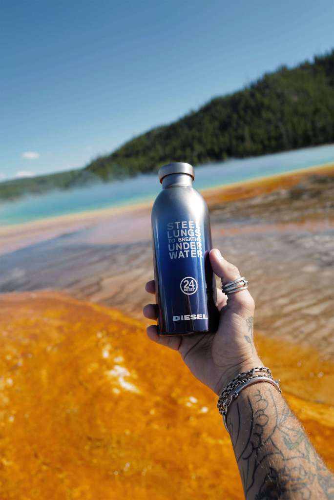 Immancabile oggetto per restare al passo con i trend: la borraccia di 24Bottles e Diesel. Insieme danno vita a una Clima Bottle unica, con una sfumatura blu denim che vuole ricordare le profondità oceaniche, richiamate anche dalla scritta “Steel lungs to breathe underwater”, per porre l’accento sull’emergenza dell’inquinamento marino. Una sensibilizzazione che il gruppo OTB, di cui Diesel fa parte, promuove anche tra i suoi dipendenti con la campagna “Remove Plastic from Water by Removing Water from Plastic” offrendo a ognuno di loro una borraccia per suggerire una modalità più sostenibile in merito all’idratazione quotidiana. È quindi un commitment reale che Diesel non solo comunica ma integra in ottica strategica anche al suo interno.