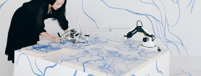 I robot sostituiranno gli esseri umani? Può una macchina diventare un artista? Sougwen Chung attraverso le sue opere ci dimostra come gli esseri umani e i robot possono creare uno splendido duetto artistico.